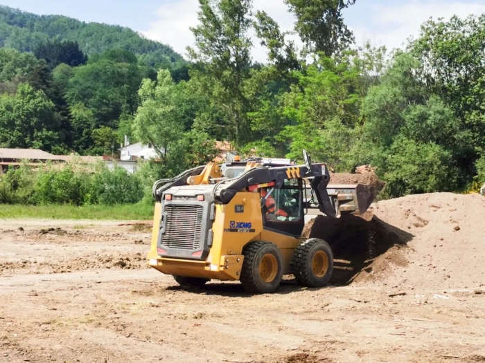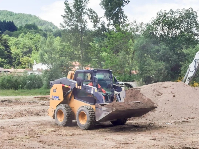 欧洲南部某国 糖心视频,徐工XC7-SV12滑移装载机正忙碌于市政管路铺设,在狭窄场地来去自如,作业游刃有余。