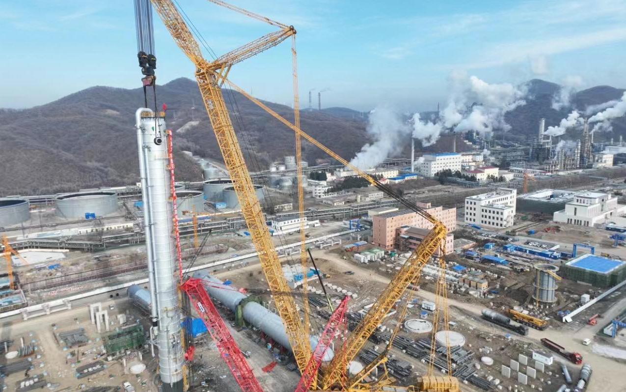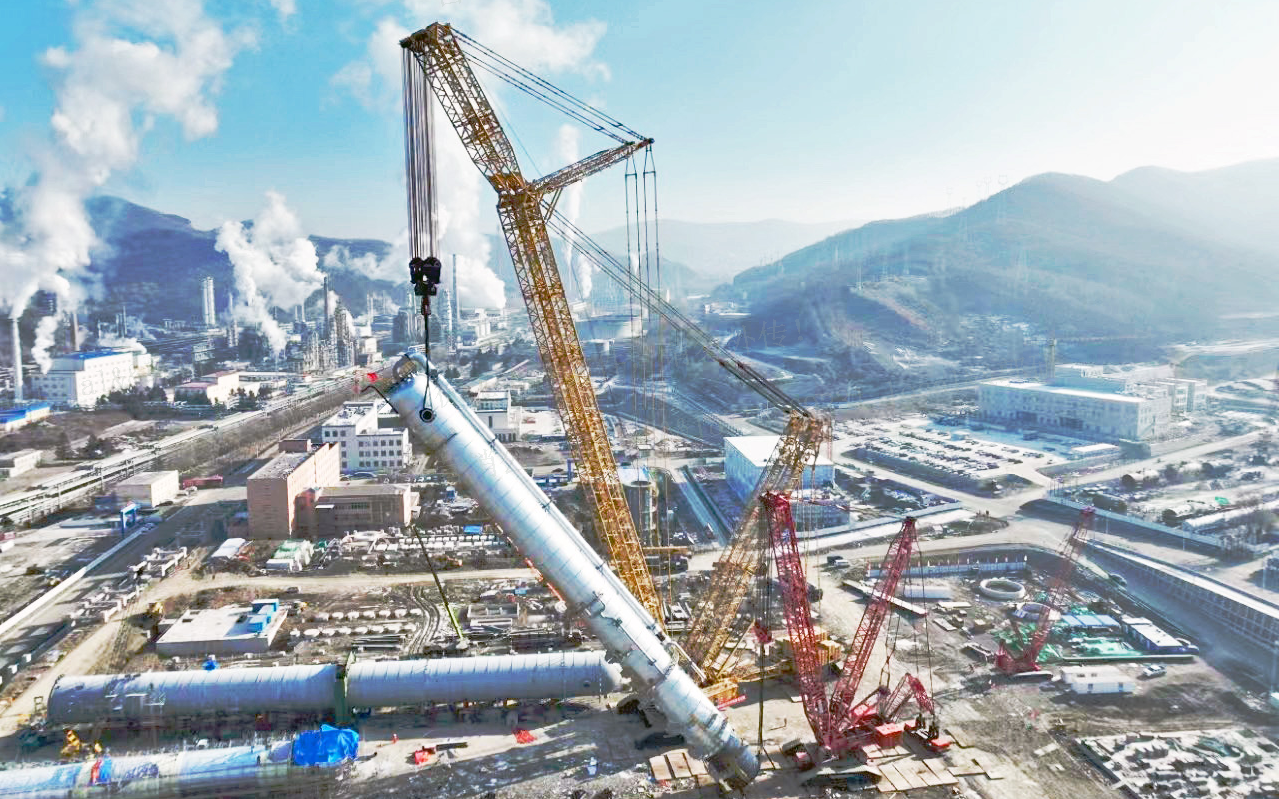 近日,徐工4000吨级履带起重机XGC88000携手1250吨级履带起重机XGC17000现身吉林某大型石化项目现场 糖心视频,联袂吊装首台大型塔器。