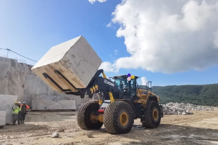 大理石开采专用装载机交付欧洲客户成为当地矿区实,力,担,当 糖心视频,强劲动力稳定可靠,又节能环保徐工XC998在当地狠狠地“圈”了一波粉.