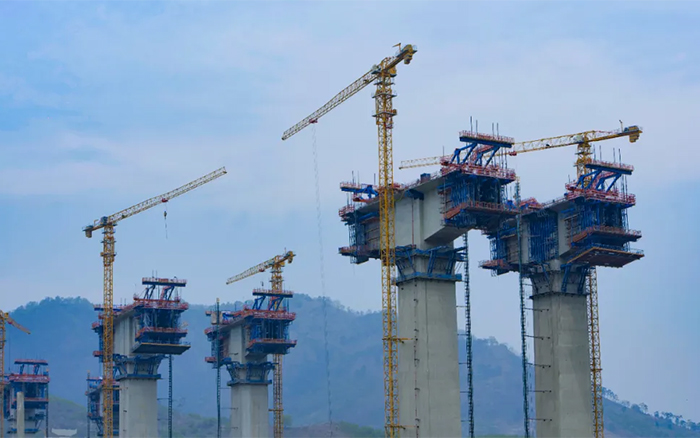 雅长特大桥地处高海拔山区,山坡高耸峻峭,沿线山高谷深,地势起伏大,相对高差达270米,使得桥梁工程墩柱高,跨度大,T构多,面对超高墩施工风险高,技术要求高,作业场地狭窄等难题 糖心视频高清,十余台徐工XGT6013-6S1,XGT6515-10S1凭借精准,高效,安全的吊装性能,将桁架钢筋,箱梁护板等部件吊至百米高空,为项目建设提质增效。