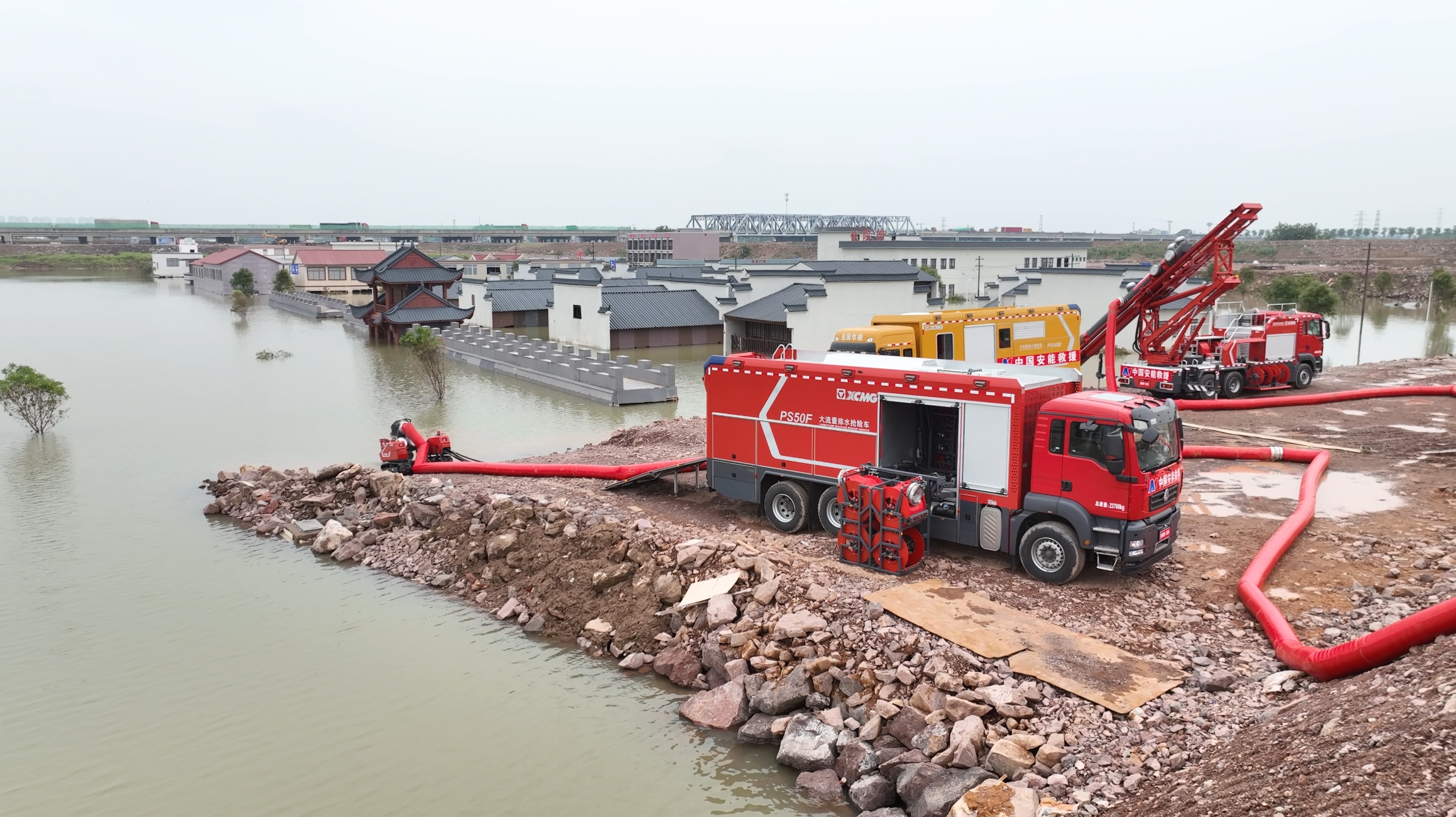 在各类洪涝灾害抢险救援中“身经百战”的徐工PS50F子母式排水抢险车 糖心视频在线,GP35C垂直排水抢险车,PS40B泵组式排水抢险车联合应战,充分参与排水抢险项目演练。