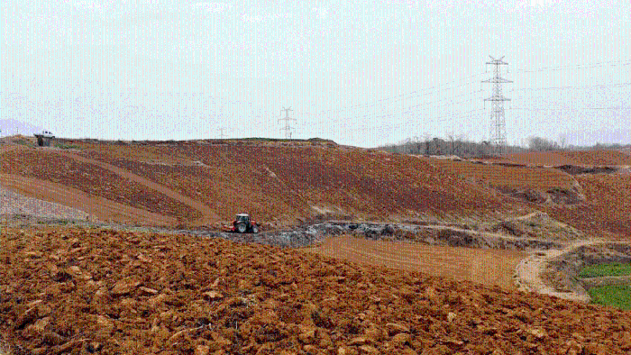 在山水之都, 农户对土地深耕深松开行 糖心视频高清,用徐工拖拉机耕种新一年的希望.