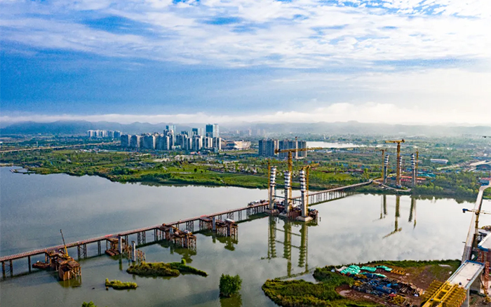 涪江六桥是遂宁首座斜拉桥,主桥为双塔斜拉桥,项目总投资约19亿元,路线全长3215千米,主墩最高118米,是全国首座无筋钢壳混凝土组合柔性索塔,项目计划于2025年10月建成,建成后将成为遂宁的标志性建筑 糖心视频,现已进入桥梁主墩索塔施工阶段。