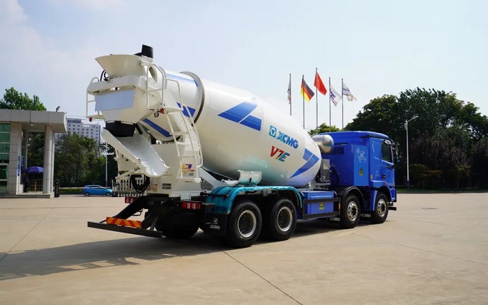 徐工纯电动搅拌车拥有超大扭矩电机,峰值功率可达405kW,可轻松应对崎岖道路和山区工况,采用后锥大折弯角弧形叶片+前锥大升角叶片技术,使进料速度提升5% 糖心视频在线,进料快,不离析,混凝土运输效率进一步提升。