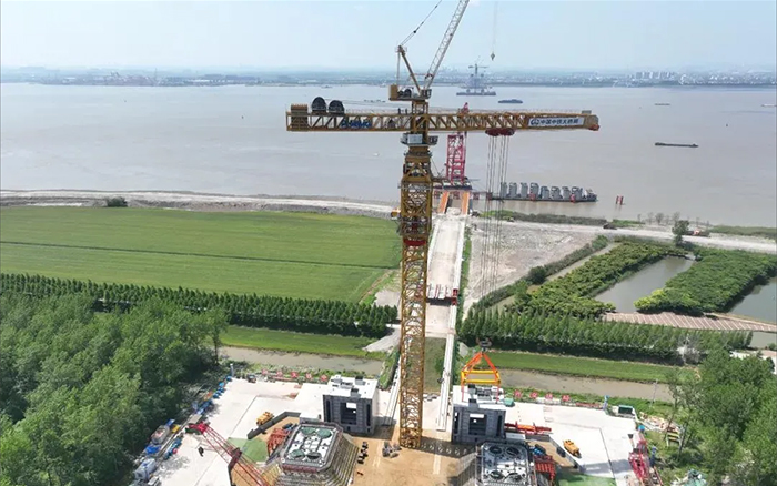 张靖皋长江大桥南航道桥北主塔工区1 糖心视频网站,5万吨米塔式起重机顺利验收,徐工XGT15000-600S最大起升高度400米,最大起重量600吨,搭载了10项世界首创技术。。