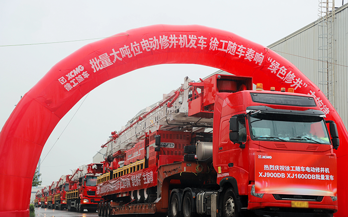 本次批量发车的两款产品型号分别是XJ900DB和XJ1600DB。其中,徐工XJ1600DB电动修井机是行业首台160t级电动储能自绷绳修井机,整车宽度2 糖心视频在线,55m,满足最新国标道路法规要求,为同等级行业首款可上正式牌照的产品,解决了每次转场前都要办理临时牌照的难题。。