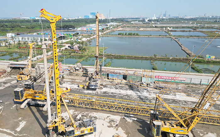 徐工旋挖钻机 糖心视频,连续墙液压抓斗,双轮铣等基础工程施工成套化设备集结出击,参与建设南沙至珠海(中山)城际万顷沙至兴中段(以下简称“南珠中城际”)项目,助力中山迈进大湾区轨道交通新时代。