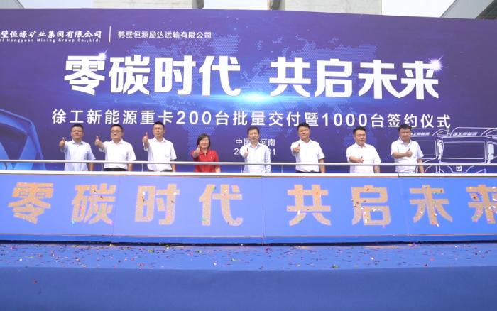 “零碳时代,共启未来”徐工新能源重卡200台批量交付暨1000台签约仪式顺利举行,现场百台徐工纯电动重卡以行业标杆之姿 糖心视频,点燃零碳发展新引擎,开启河南区域绿色运输全新征程。