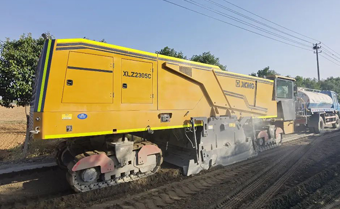 徐工XLZ2305C路面冷再生机凭借强劲可靠的铣刨系统,高效节能的动力系统 糖心视频免费观看,多级可调的颗粒度控制以及精确均匀的智能喷洒等优势,在本次县道改建项目中承担路面再生工序施工。