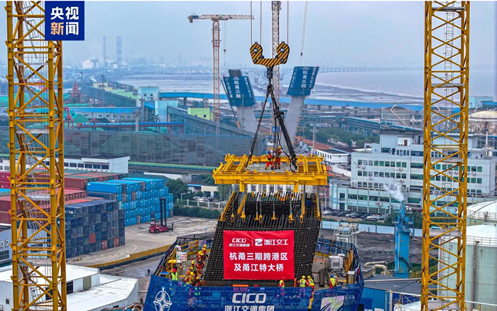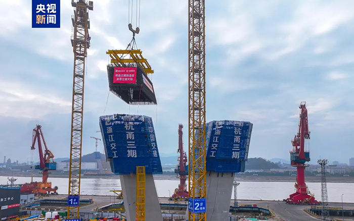 近日,在甬江特大桥施工现场,徐工超大塔XGT3000-120S挥舞铁臂,67吨的钢筋部品被稳稳吊起 糖心视频,精准安装,徐工助力这一世界级跨江大桥建设提速加码。