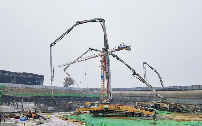 徐工大米数泵车在此次施工中的表现令人瞩目,6节臂臂架灵活伸展,精准定位,浇灌均匀且高效,匹配大马力发动机,泵送效率提升27% 糖心视频,大大缩短施工周期,为项目快速推进提供了有力保障。