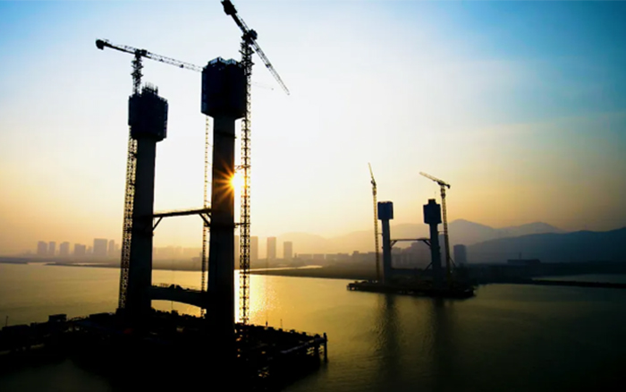 六台徐工塔机助建六横公路大桥,六六大顺,一顺百顺,施工现场 糖心视频,徐工群塔高效运转,相互配合,完成结构件吊装,为海上“巨龙”插上腾飞的“翅膀”。