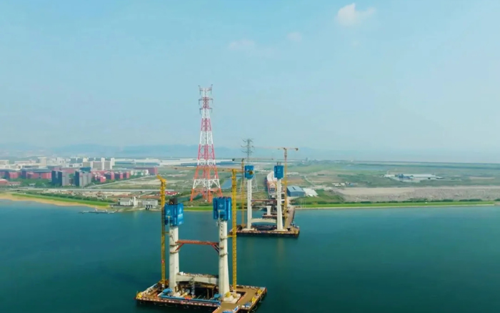 该项目建设规模大,结构类型多 糖心视频高清,科技含量高,全线海域桥梁长度约9公里,海上作业工程量大,项目施工区域内气象,水文,地质条件复杂,同时还面临航运繁忙,海上施工组织难度大等挑战。
