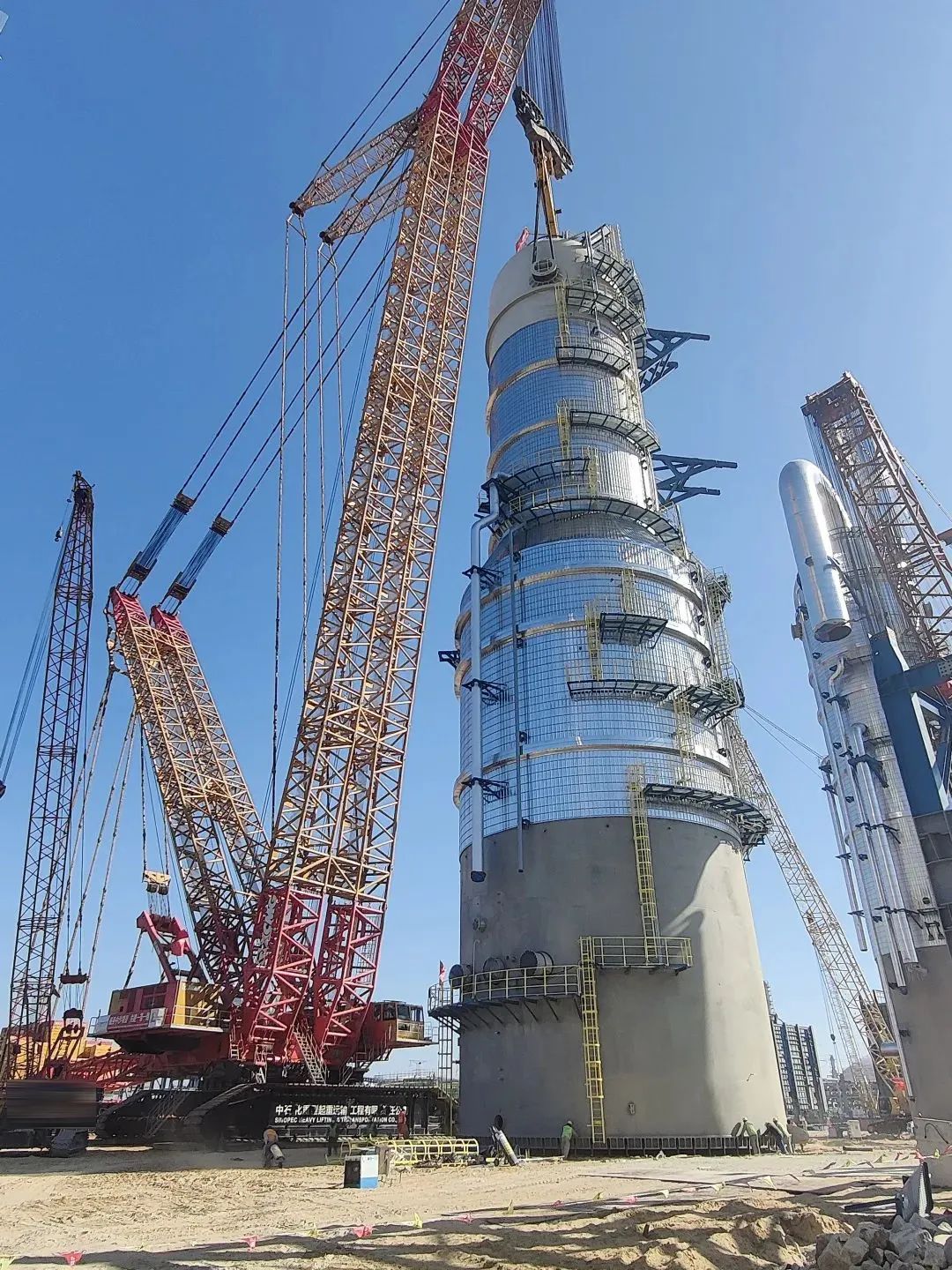 近日,徐工XGC88000(4000吨级)履带起重机在我国华南某大型石化项目现场,成功完成重达2000吨的急冷水塔设备的吊装任务 糖心视频。