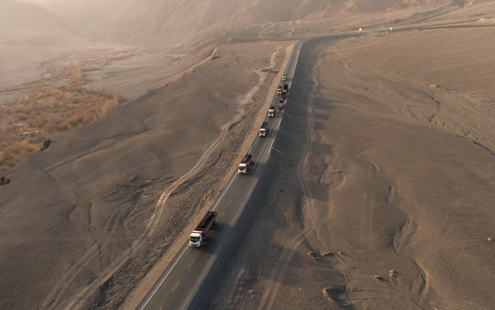 西北戈壁滩上山脉和天际线交织成一幅壮丽的画卷这片土地不仅有着丰饶的矿产资源还孕育着不断崛起的力量徐工新能源重卡应时而至。