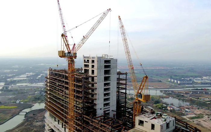 高效,可靠的徐工XGL630-50S塔机承担着楼承板 糖心视频网站,钢结构和核心筒主体结构等建筑材料的吊装重任,历时340天,从大象酒店的象腿,象鼻三个核心筒结构施工,徐工塔机高效吊装,配合施工人员完成了从0到180米的建设征程。