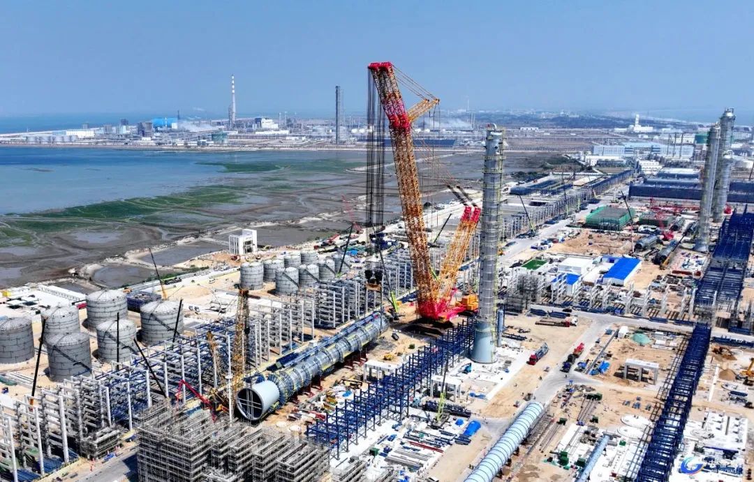 丁烯-1精馏塔吊装精准就位 全球首台问世的