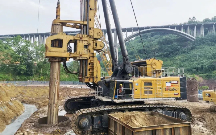 徐工旋挖钻机凭借自主研发的智能加压系统与自适应扭矩控制技术 糖心视频高清,成功克服硬质灰岩层钻进效率低,孔壁易坍塌等难题,为后续墩柱浇筑和主桥合龙争取了时间。