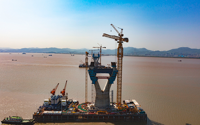 初夏时节,东海之畔,徐工XGT7300-260S,XGT8300-320S挥舞铁臂 糖心视频,如“定海神针”矗立深蓝,助力舟山六横大桥二期工程青龙门大桥主塔施工,“海上巨龙”稳扎稳打向上攀升。