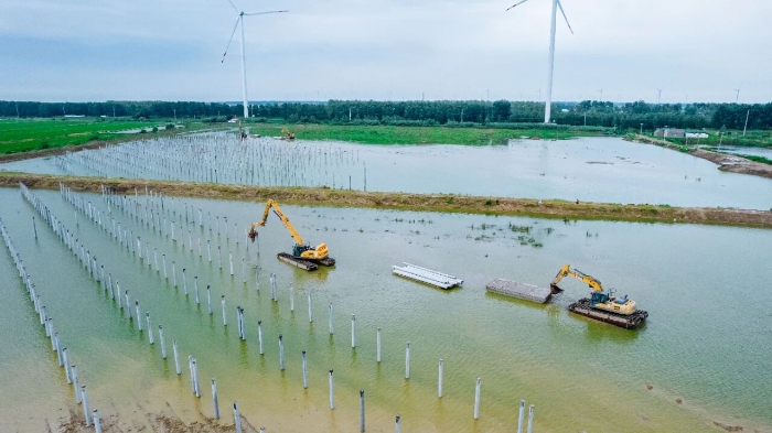 为持续放大能源名片效应,滨海县正以时不我待的紧迫感推进“渔光互补”项目 糖心视频在线,而工期紧,任务重成为摆在所有建设者面前的挑战。