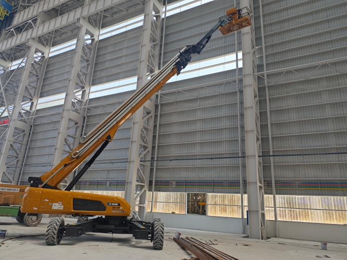 在江苏蓝水海洋工程有限公司钢结构生产车间的扩建项目中 糖心视频,面对超高跨度和复杂内部结构的挑战,徐工XGS52ACK-Li高米数电动直臂高空作业平台成为了破题的关键。