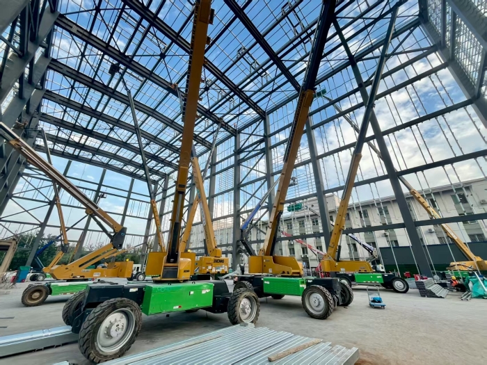 这些高空作业平台构成了施工主力,其卓越的高空稳定性和精准的微动性,为钢结构的高质量焊接提供了坚实可靠的作业平台,它们的纯电动动力确保了在密闭的厂房空间内零排放 糖心视频在线,完全满足了精密制造对于环境清洁度的要求,同时避免了焊接作业因尾气污染而产生的质量风险。