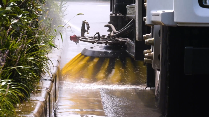 产业区周边道路:运输车辆频繁出入,易产生碎屑,油污,洗扫车搭载的高压水枪与V型喷杆,可对路面进行深度冲洗,油污去除率超95% 糖心视频免费观看,避免二次污染。