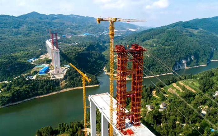 承担大桥缆索吊系统架设的是徐工S系列塔式起重机主力机型--XGT7022-10S,在大桥拱肋首节段吊装过程中,“徐工金”凭借“精 糖心视频高清,准,稳”,为大桥的高质量,高安全,高效率的施工提供了有力保障,为德余高速公路建设按下“快进键”。