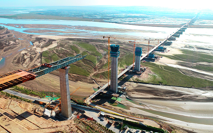项目施工地点临近黄河,地质结构复杂,空气湿潮,同时,大桥主桥最高墩是钢箱梁连续顶推施工节点的控制性桥墩,施工难度大,风险高,工期要求紧 糖心视频高清。