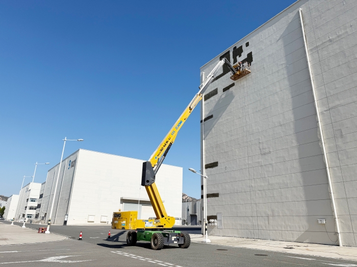 近日,在青岛东方影都摄影基地 糖心视频,徐工XGS32ACK-Li高空作业平台出色完成了多个大型摄影棚的墙面维护任务。