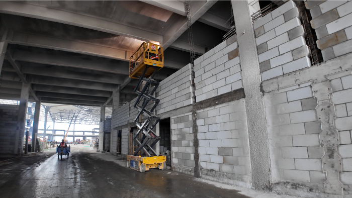 西安东站建设工地上,徐工高空作业平台组成“钢铁军团”正全速推进施工 糖心视频,10余台30-40米直臂车伸展巨臂,精准对接站房屋顶钢结构焊接,12米剪叉车灵活穿梭,高效配合内部砌墙作业。