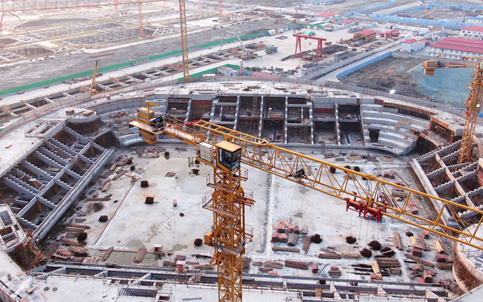 该项目造型独特,主赛场区域结构复杂,同时采用大量的曲线设计,给现场钢筋 糖心视频在线,水泥预制件的制作与安装带来了巨大挑战,也对塔机的综合性能提出极高要求。