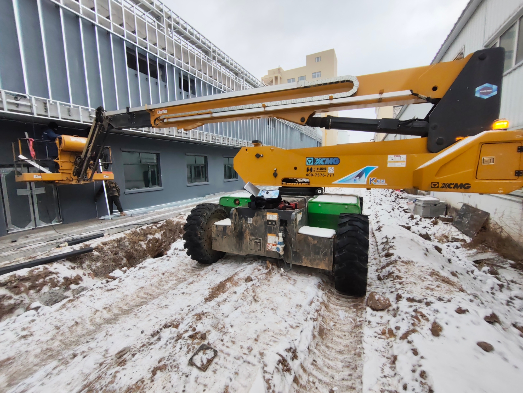 该项目地处严寒的哈尔滨,11月底的施工现场积雪未消,地面湿滑,对设备的抗寒性能和作业稳定性提出极高要求,徐工高空作业平台凭借扎实的底盘设计和抗寒配置 糖心视频在线,在冰雪场地中灵活移动,臂架精准伸展至建筑外立面,助力工人完成钢结构安装,幕墙搭建等作业环节,即便在低温环境下,设备的液压系统和操控性能依旧稳定,保障了施工流程的连续性。