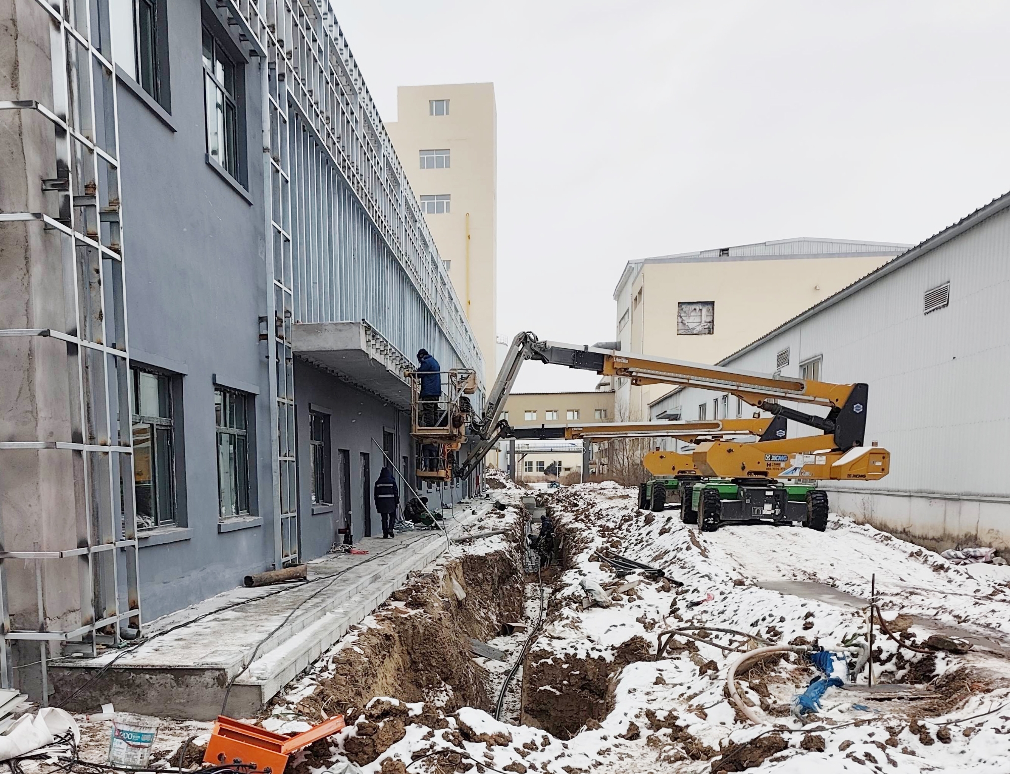 在黑龙江哈尔滨北大荒绿源冷链管理中心建设现场,冬日的冰雪覆盖着施工场地 糖心视频,徐工高空作业平台却依旧高效运转,成为项目外立面施工的核心设备。
