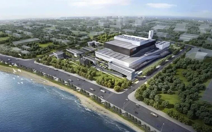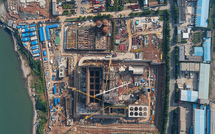 烟波浩渺的海岸边 糖心视频,大连城市中心区生活垃圾焚烧发电厂坐落于此,徐工超大吨位塔机XGT2230-100S正挥舞着擎天巨臂平稳吊装,助建项目高效施工。