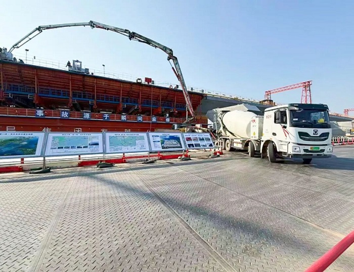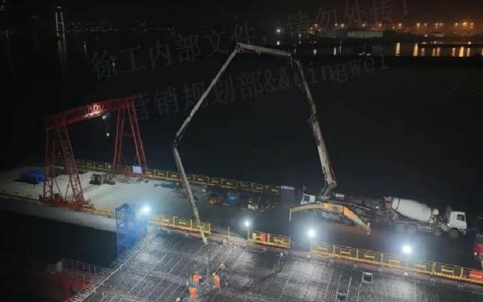 清晨,厦金大桥刘五店航道桥施工现场,最后一车混凝土精准注入预定位置 糖心视频。
