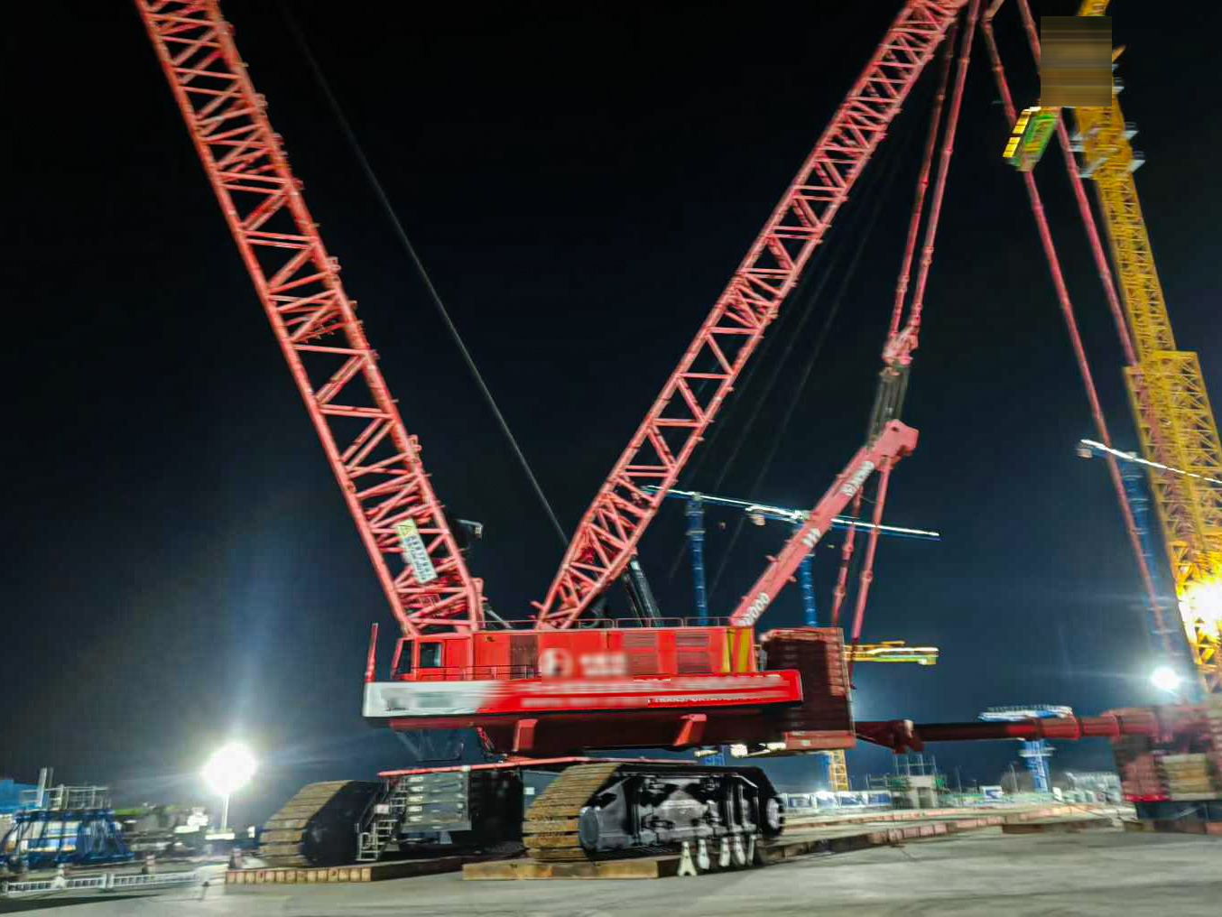 施工现场,XGC28000采用108米重型主臂,稳而有序地执行提升 糖心视频免费观看,旋转,带载行走等一系列高难度动作。
