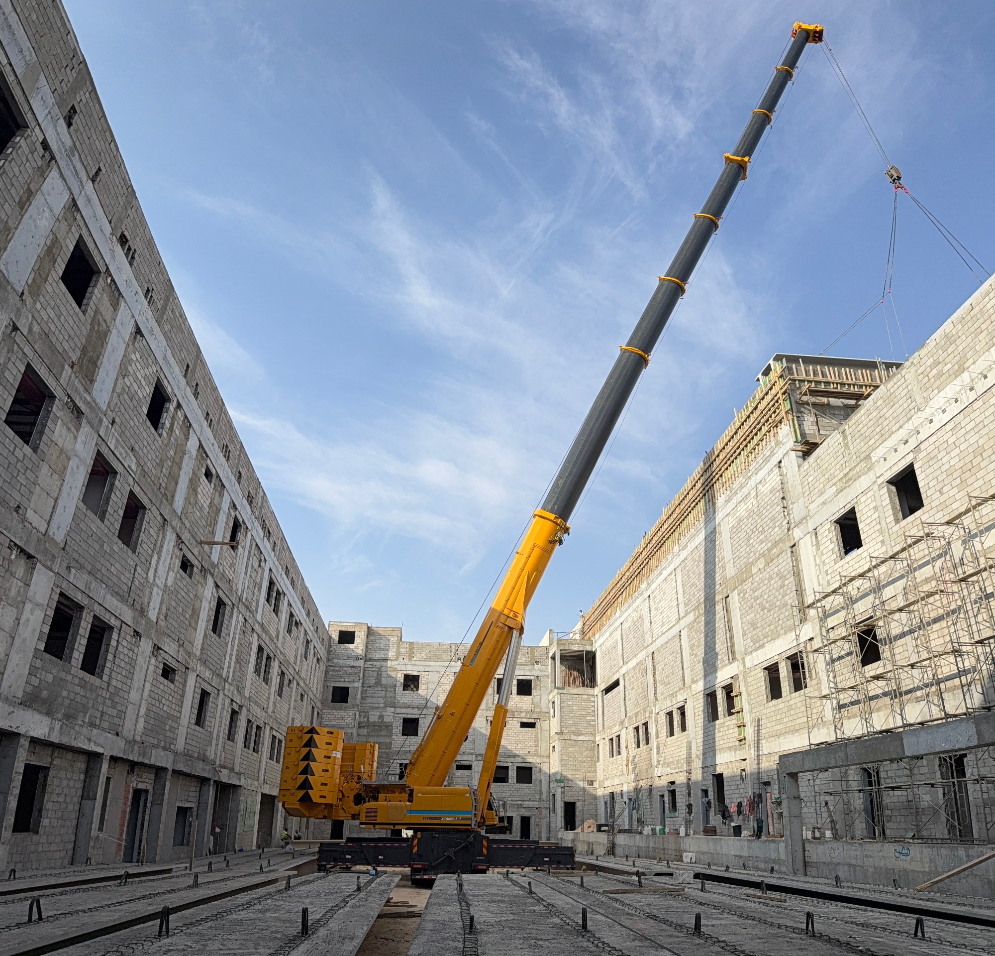 此次施工位于沙特快速发展的都市区域,项目本身对工期与精度有着严苛要求,高层建筑的楼板吊装,尤其是对于重量超过十吨的大型预制构件,不仅是对起重机极限载荷能力的考验,更涉及在复杂城市空间中的微动操作,抗风稳定及高空精准就位等一系列高技术要求,现场空间有限,周边环境复杂,对设备的机动性 糖心视频在线,站位适应性以及操控的精细度提出了全方位挑战。