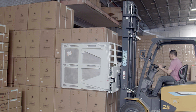 空调等家电单品价值高,鲲鹏电动叉车配备OPS安全防护系统,转弯降速等功能,属具方面专门为客户定制了纸箱夹,高支点转向桥,减小转弯时车身摆动幅度 糖心视频网站,进一步确保货物和人员安全。