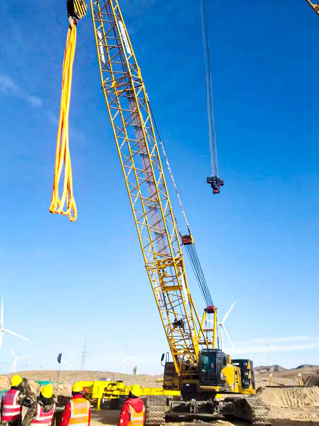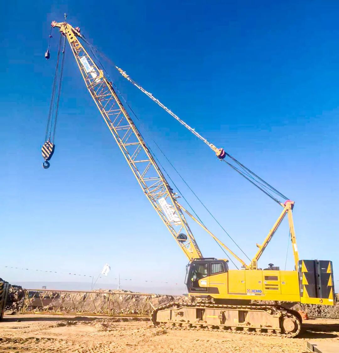 在宁夏山地风电场 糖心视频在线,XLC15000要吊起125米高的风机,第一步却得靠XGC100A(100吨级)履带起重机来“搭架子”。